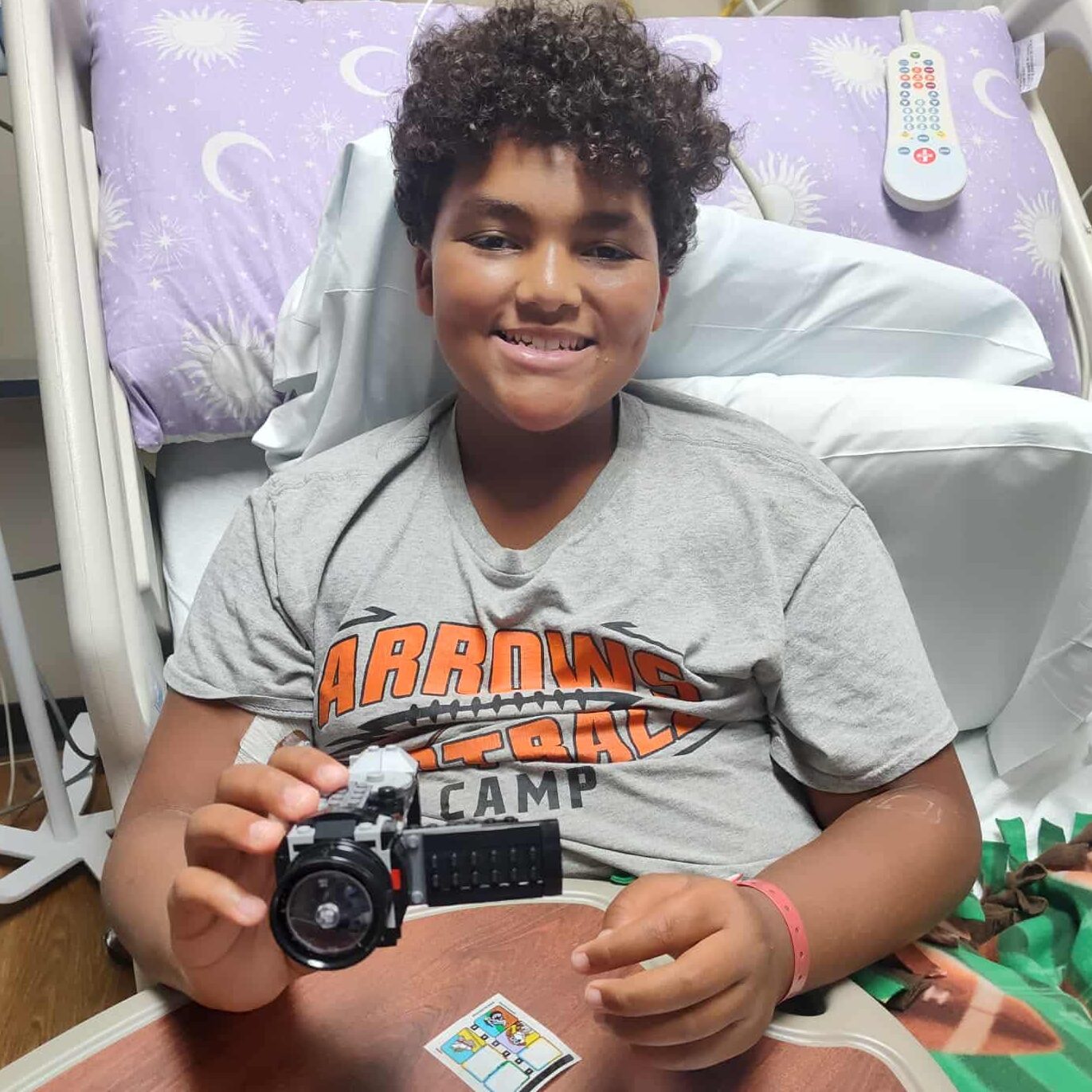 Throughout these numerous days in the hospital, Jaxon and his family found that being active and engaged helped everyone feel better, be more optimistic, and passed the time waiting and healing quicker. For Jaxon, the main way of filling this time quickly became building and playing with LEGO sets.